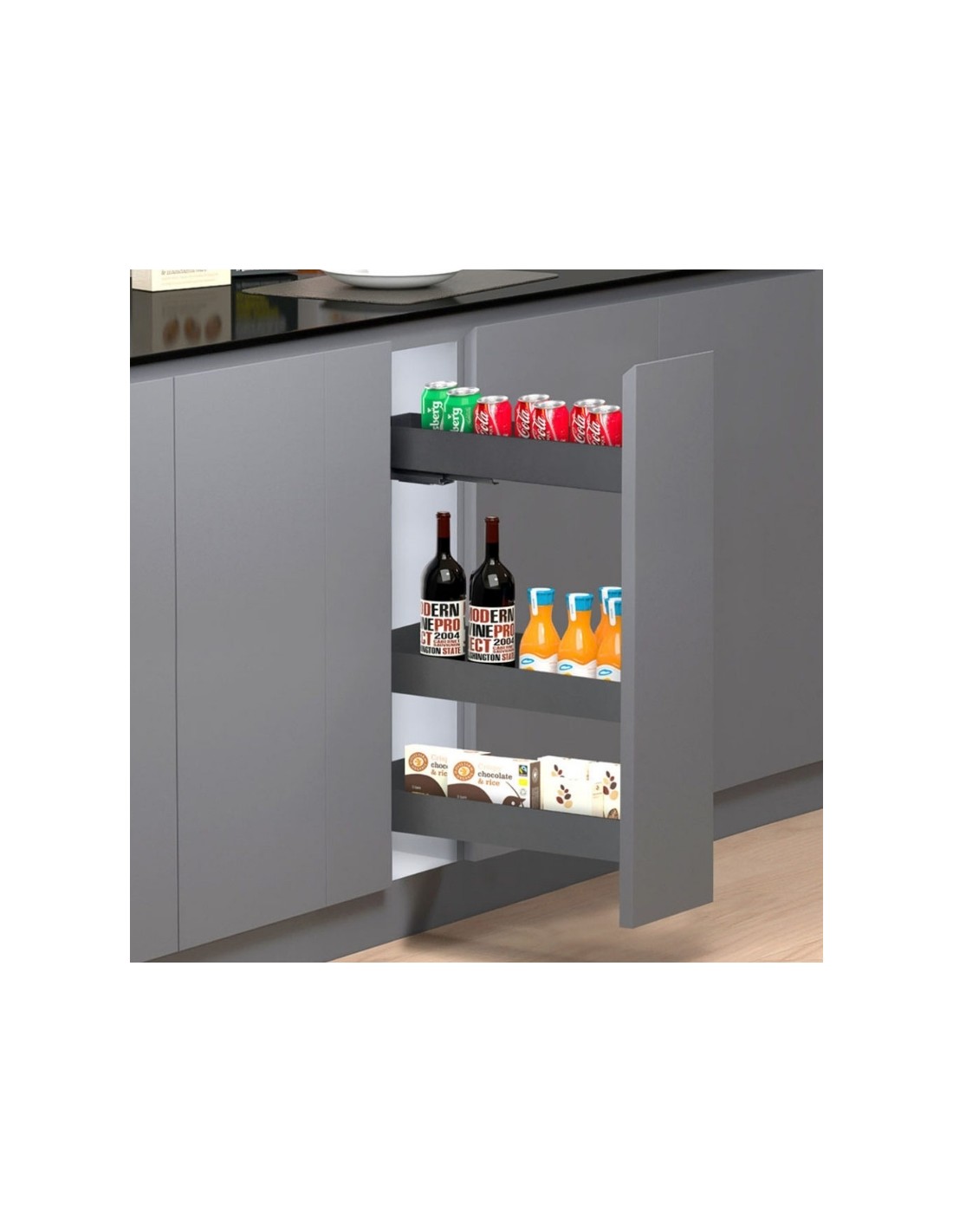 • Accesorio práctico para organización de botellas en muebles de cocina